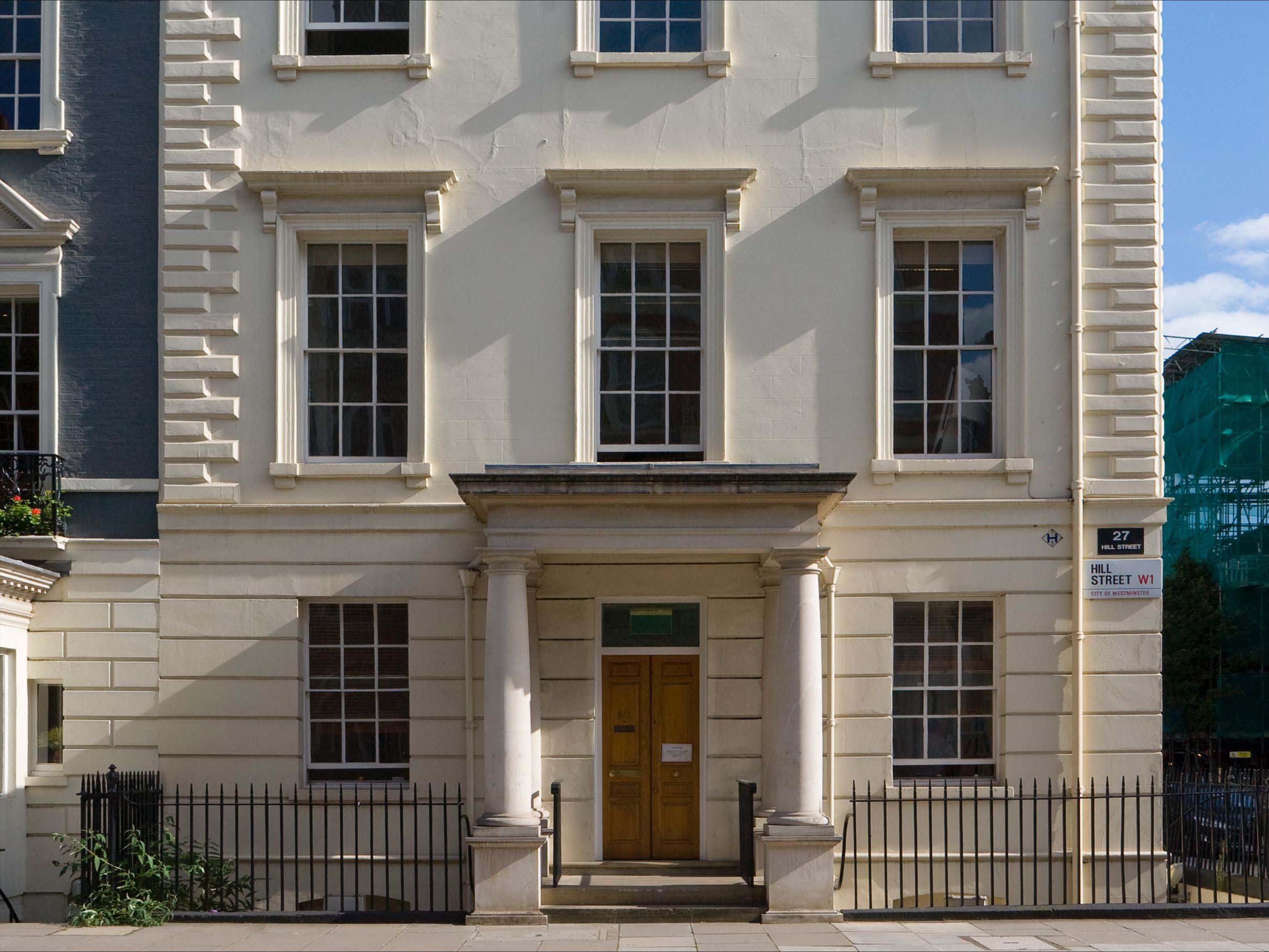 27 Hill Street is a prominent building on the corner plot junction where Hill Street and Hay’s Mews meet, moments from Berkeley Square. The available space comprises several period offices over various floors with private terracing on the lower ground and 1st floors. The building further benefits from dual entrances on Hill Street and Hay’s Mews.